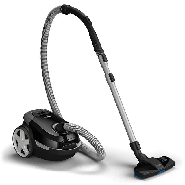 Comprimento do cabo 6 m Tubo telescópico de metal de 2 peças Rodas Borracha Tipo de bolsa S-bag com desempenho ultralongo Capacidade de poeira 3 L Filtro de saída Filtro anti-alérgico Filtro do motor Filtro de espuma de 1 camada Acessórios incluídos: Bocal estreito - Escova integrada Cor Preto Dimensões do produto (L x P x A): 400 x 282 x 251 mm Peso do produto 4,6 kg Tecnologia revolucionária AirflowMax para forte poder de sucção O design exclusivo do canister maximiza a capacidade e o fluxo de ar com um saco de pó que não obstrui, permitindo bastante poder de sucção até que o saco de pó esteja cheio. Motor de 900 W para grande potência de sucção O motor altamente eficiente de 900 W oferece alta potência de sucção para resultados de limpeza profunda. Recolhe até 99,9% do pó para proporcionar uma limpeza completa A escova TriActive Pro e o alto poder de sucção garantem a sucção de 99,9% do pó fino. O sistema de filtro Allergy H13 captura mais de 99,9% de poeira fina O sistema de filtro Allergy H13 retém mais de 99,9% das partículas finas de poeira, incluindo pólen, pêlos de animais e ácaros, tornando-o perfeito para pessoas com alergias. O nível de filtração é equivalente ao do filtro HEPA 13. Compacto e leve para facilitar o transporte Graças ao seu design compacto e leve, o armazenamento e transporte do aspirador é muito fácil. Escova TriActive para 3 modos de limpeza minuciosa A escova TriActive usa 3 ações de limpeza em uma passagem. A base especialmente projetada remove a poeira profundamente dentro dos tapetes, enquanto a grande abertura frontal suga os detritos maiores. Canais de ar em ambos os lados da escova coletam poeira e sujeira de paredes ou móveis. Escova macia integrada ao cabo, sempre pronta para uso A escova para pó é integrada ao cabo, portanto, está sempre pronta para uso em móveis, superfícies planas e estofados. Substitui FC8373/09.