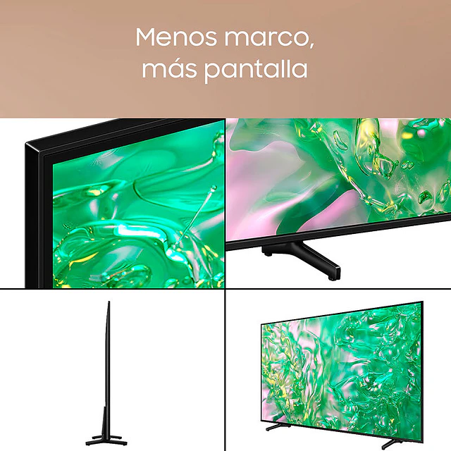 TV 4K UHD de 50' (125 cm) - Crystal UHD HDR - Gaming Hub Smart TV WiFi - Compatível com assistentes de voz - Móvel para TV - Tela espelhada Resolução Crystal UHD 4K Imagem: Processador Crystal 4K - HDR (High Dynamic Range) - Mega Contraste - Escurecimento UHD - Movimento-de contraste Melhoria Smart TV: sistema operacional Tizen™ Smart TV - Assistentes de voz: Bixby, Alexa e Google Assistant - Samsung TV Plus - Navegador da Web - SmartThings Hub - Samsung Health - Experiência em vários dispositivos : Mobile to TV, Sound Mirroring, TV wireless On, Tap View - NFT Nifty Gateway - Apple AirPlay - Daily+ Conectividade: DVB-T2C - Sintonizador analógico - HbbTV 2.0.3 - Wi-Fi - Bluetooth- 3 HDMI - eARC/ARC - Anynet+ - 2 x USB-A - 1 x Ethernet (LAN) - Plugue CI Design: AirSlim - Visual fino - Cor Preto Controle: TM2360E Eficiência energética G Compatível com suporte de parede VESA 200 x 200 Dimensões (LxAxP mm): Com embalagem 1246 x 761 x 131 Com base 1118,3 x 683,6 x 228,8 Sem base 1118,3 x 644,6 x 25,7 Base 764,2 x 228,8 PESO (kg): Com embalagem 14,8 Com base 11,8 Sem base 11,5 Dynamic Crystal Color: Cores incríveis. Imagens reais com cores mais puras e naturais com resolução 4k. Ampliação para 4K. Aproveite seu conteúdo favorito em 4K. A Inteligência Artificial aprimora cada cena para qualidade 4K, independentemente da resolução original. A melhor Smart TV: entretenimento de próximo nível com Samsung Tizen OS. Conteúdo, mais de 100 canais gratuitos e exclusivos, jogos na nuvem e todos os seus dispositivos conectados. Samsung TV Plus: TV grátis. Esqueça as assinaturas e aproveite canais e programas gratuitos. 103 canais de gêneros como notícias, entretenimento, esportes e muito mais. Acesse automaticamente conteúdo gratuito integrado à sua TV Samsung sem a necessidade de baixar ou conectar-se a qualquer aplicativo. Design AirSlim: Ainda mais fino. Com um design nunca antes visto nesta categoria, a sua televisão integra-se perfeitamente na sua parede. Processador Crystal 4K: Cores incríveis. Sinta cada cor como se a visse na vida real. Este processador garante uma resolução 4K de alta qualidade. Contrast Enhancer Melhor contraste e percepção de cores: O Contrast Enhancer ajusta constantemente o contraste da tela para que você desfrute de uma melhor sensação de profundidade e cor. HDR. Ainda mais contraste. Você verá todos os detalhes de cada cena, independentemente de serem claras ou escuras. Gaming Hub: Jogue sem downloads. O Samsung Tizen OS permite que você acesse suas plataformas, jogos e aplicativos favoritos em nuvem, sem precisar de um console e desfrute de mais de 3.000 jogos. Ele recomenda jogos de acordo com seus gostos para que você possa encontrá-los com rapidez e facilidade. Motion Xcelerator: Ganhe todos os jogos. Desfrute de imagens mais nítidas graças ao Motion Xcelerator, que estima e prevê automaticamente o movimento entre os frames para melhorar as transições e criar imagens suaves e fluidas. Modo Automático de Baixa Latência (ALLM): Confie nos seus reflexos Jogabilidade suave sem desfoque ou vibrações. Com atraso de entrada reduzido (ALLM), confie em seus reflexos sem deixar que a velocidade de resposta falhe. A baixa latência foi medida em condições de testes internos e está sujeita a alterações com base nas configurações do jogo ou em condições específicas. Q-Symphony: Televisão e barra de som em perfeita harmonia. Deixe-se envolver por um som orquestrado em perfeita harmonia. O Q-Symphony permite que a barra de som e os alto-falantes da TV sejam sincronizados para funcionarem simultaneamente, criando um melhor efeito surround sem a necessidade de desativar os alto-falantes da TV. Object Tracking Sound Lite (OTS Lite): O som que segue a ação. Som 3D com canais virtuais superiores que farão você desfrutar de uma experiência envolvente. Som adaptável: soa como deveria soar. O Adaptive Sound otimiza o som em tempo real com base nas cenas e no conteúdo graças à Inteligência Artificial. Visualização do mapa 3D. A TV, o cérebro da casa. Controle melhor a sua casa graças ao monitoramento intuitivo que permite gerenciar seus eletrodomésticos e dispositivos IoT usando um mapa 3D da sua casa. Também mostra notificações na TV sobre o status dos seus aparelhos. Samsung Daily+: Sua vida sob controle. Através do ecossistema aberto do Samsung Tizen OS, o Daily+ permite-lhe controlar todas as suas atividades diárias a partir da sua TV. Daily+ inclui aplicativos e serviços como SmartThings, Workout Tracker, Workspace e muito mais. Controle sua casa: Otimize o uso dos seus dispositivos e viva uma vida mais inteligente e adaptada às suas necessidades graças ao aplicativo SmartThigns integrado à sua TV. Existem milhares de dispositivos compatíveis que irão simplificar a sua vida diária. Além disso, você pode usar sua tela como controle remoto para sua casa com o 3D Map View Workspace: Trabalhe e estude confortavelmente em casa. Acesse facilmente seu computador e dispositivos móveis na tela da sua TV para trabalhar e estudar no conforto da sua sala. Assistentes de voz integrados: controle tudo com sua voz. Escolha seu assistente de voz favorito: Bixby ou Amazon Alexa. Pela primeira vez, eles são integrados à sua TV Samsung para oferecer a melhor experiência de entretenimento e controle em sua casa. Base ajustável: Com ou sem barra? Obtenha a experiência de visualização perfeita ajustando a altura do suporte da TV. Aumente o volume se você tiver uma barra de som para não atrapalhar a tela.